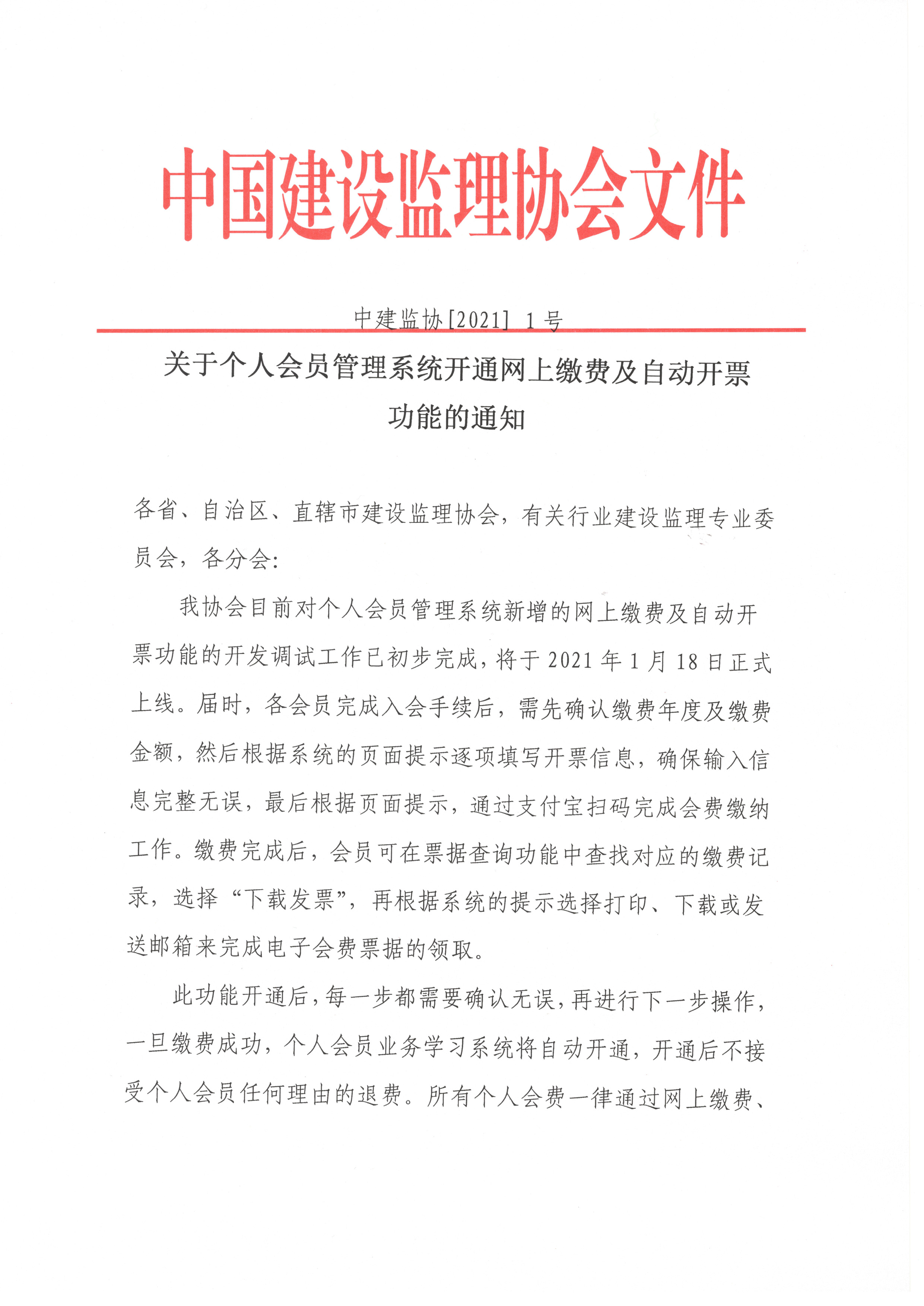转发中国建设监理协会《十大现金买球入口个人会员管理系统开通网上缴费及自动开票功能的通知》
