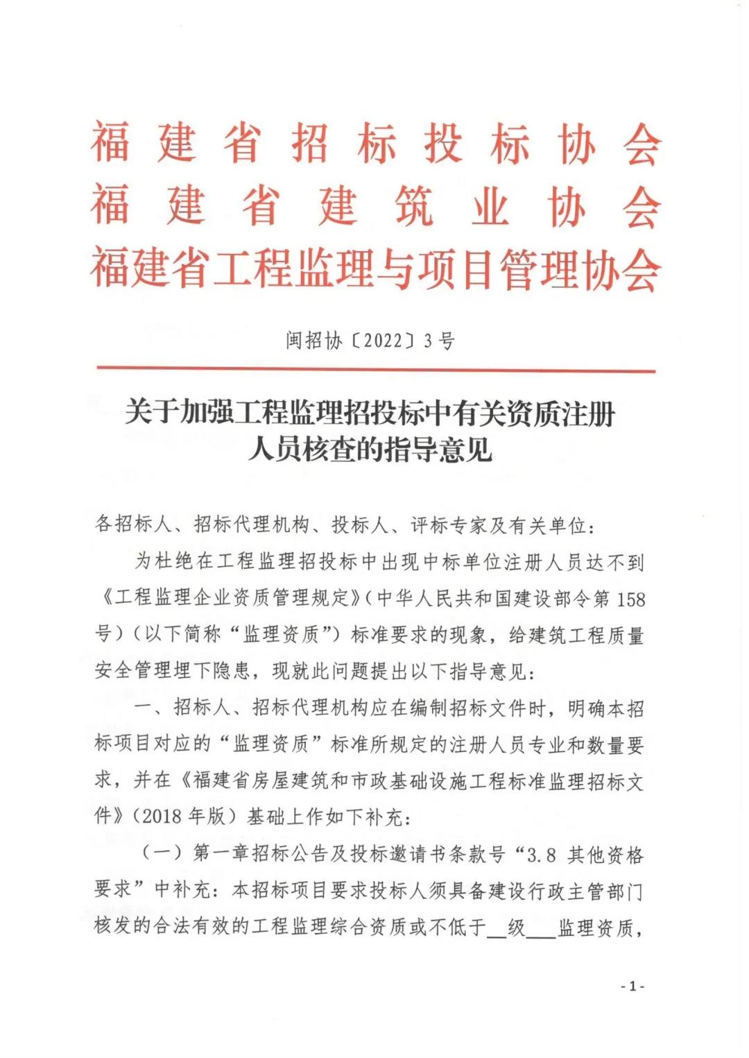 监理资质注册人员不达标,将给未来建设工程项目实施埋下隐患。日前,福建省招标投标协会、福建省建筑业协会、十大现金买球入口联合印发指导意见。意见提出,招标人在招标文件中明确设置对投标人的资质及注册人员要求、评标委员会在评标环节增加资质注册人员核查、投标人在投标文件中增加资质注册人员达标承诺。通过环环相扣的三方面措施,坚决杜绝监理资质注册人员不达标的投标人成为中标候选人。